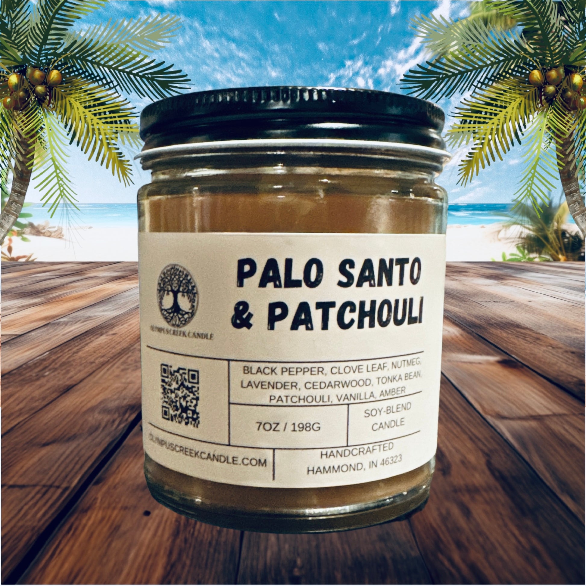 Experience the mystical allure of our Palo Santo and Patchouli candle, a complex blend of exotic and grounding scents. The invigorating notes of black pepper and clove leaf intertwine with the warm spice of nutmeg, creating an enticing opening. Calming lavender and rich cedarwood add a soothing and earthy depth, while the sweet, creamy blend of tonka bean, patchouli, and vanilla infuses the fragrance with a comforting warmth. Hints of amber provide a luxurious finish, making this candle a perfect choice for those seeking a tranquil and enchanting ambiance. Light it to transform your space into a serene sanctuary filled with the harmonious balance of spice, earth, and sweetness.